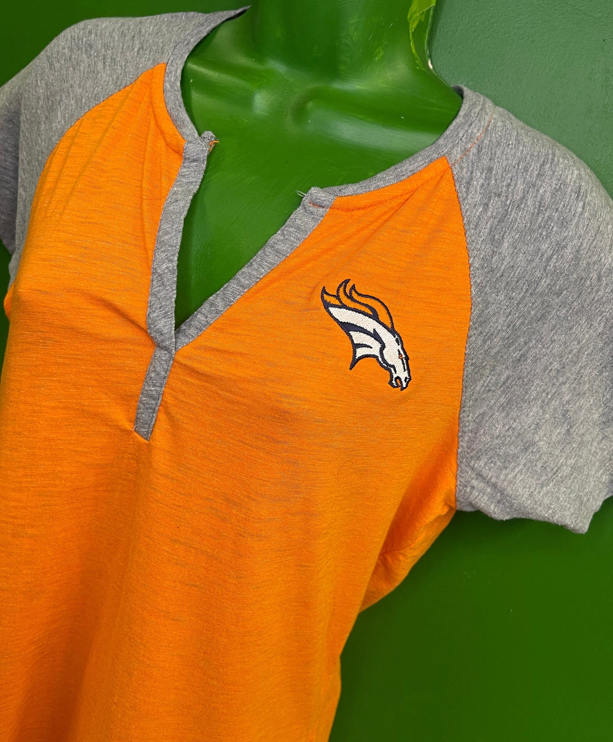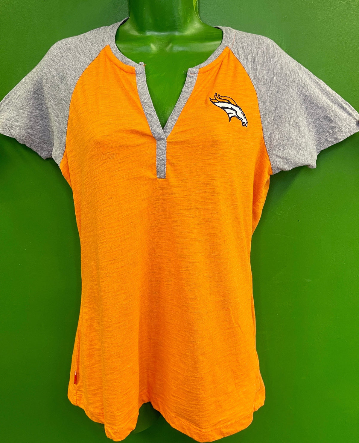 AntiguaNFL Denver Broncos Orange & Grey Henley Style T-Shirt Women's Large