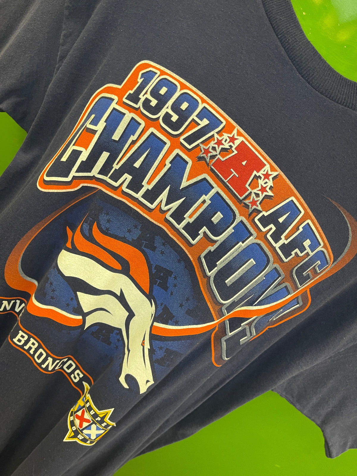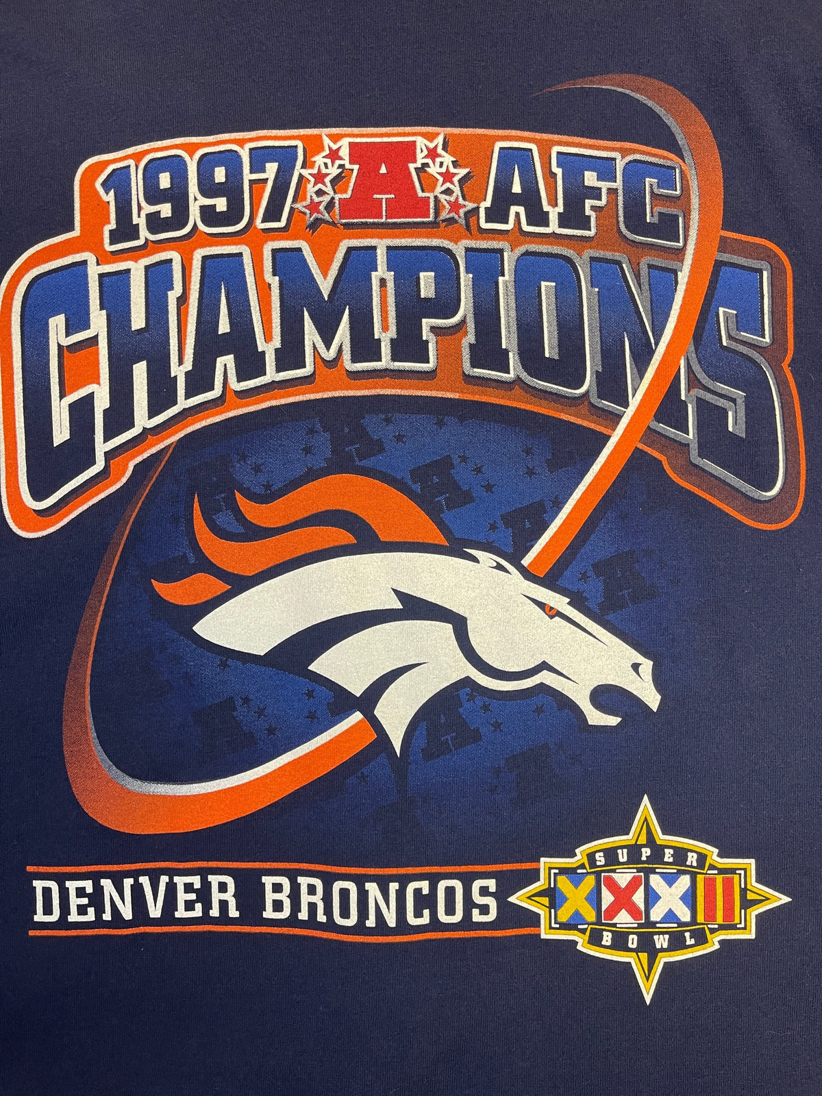Pro PlayerNFL Denver Broncos Vintage Super Bowl XXXII Dark Blue T-Shirt Men's X-Large