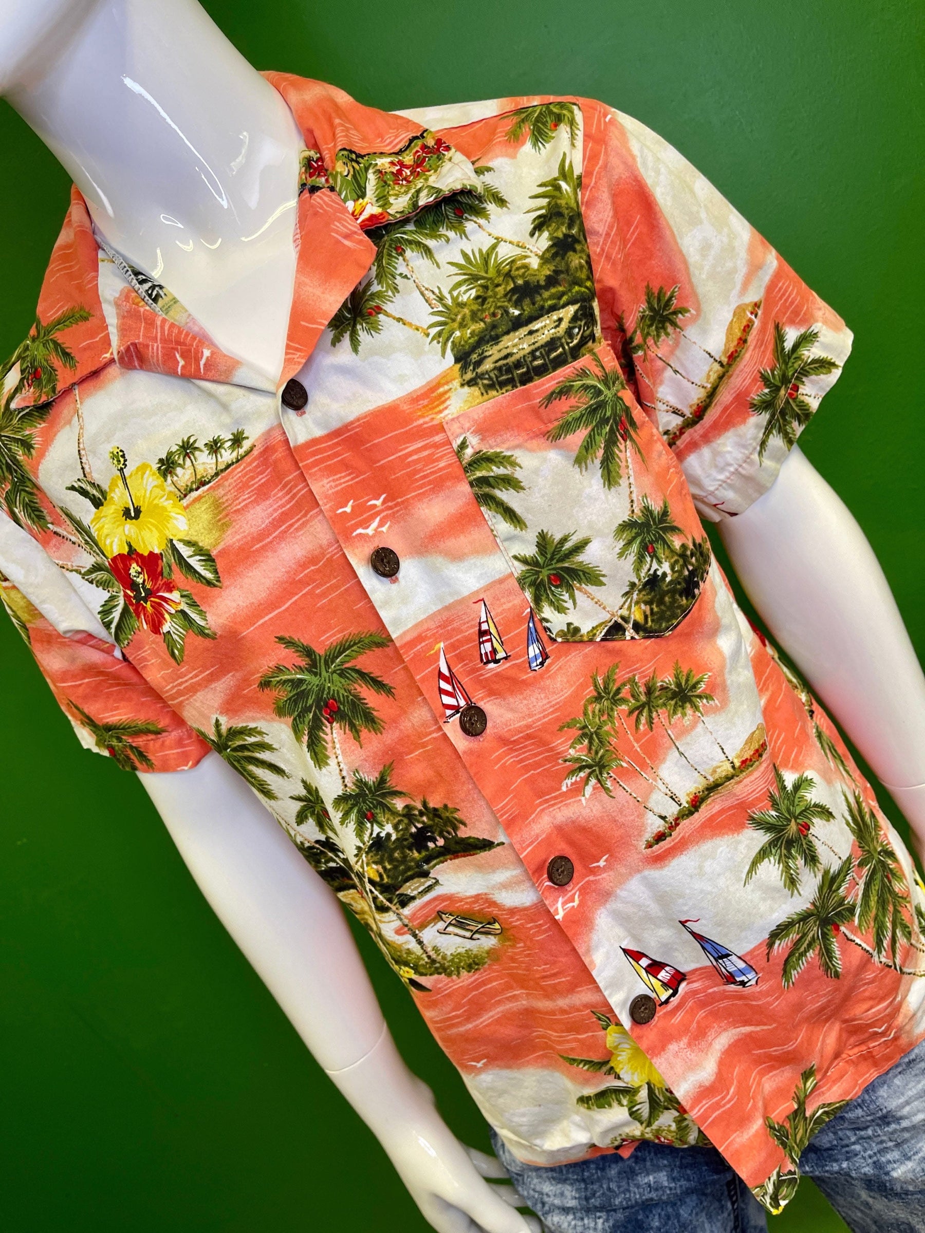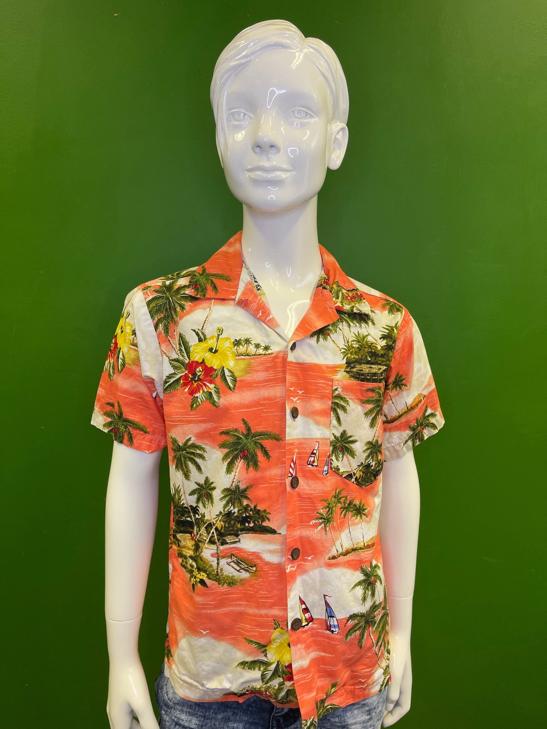 Made in Hawaii Orange Palm Tree Hawaiian Aloha Shirt Youth Medium 10