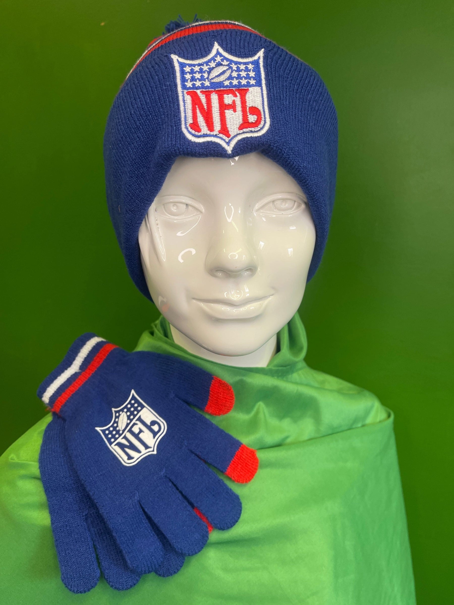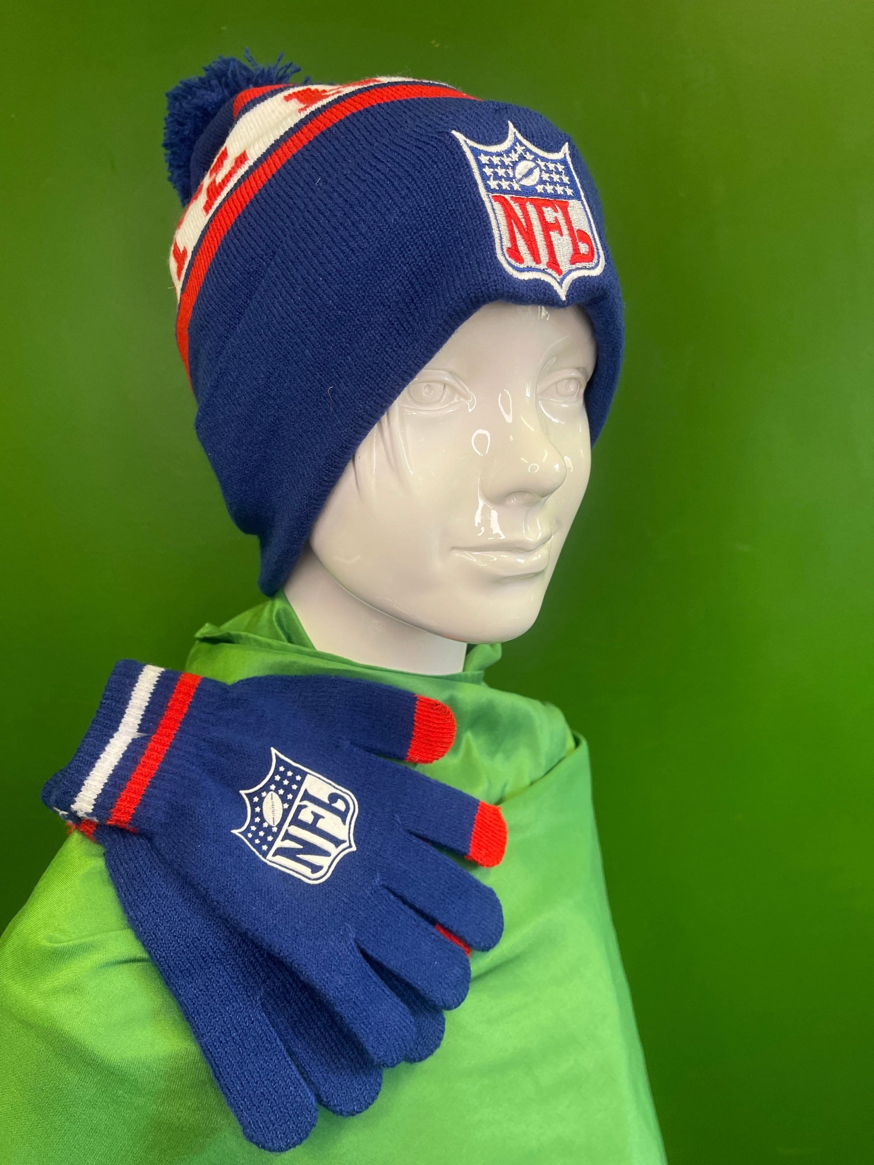 NFL Team Apparel Woolly Bobble Hat and Gloves Gift Set Youth OSFA NWT