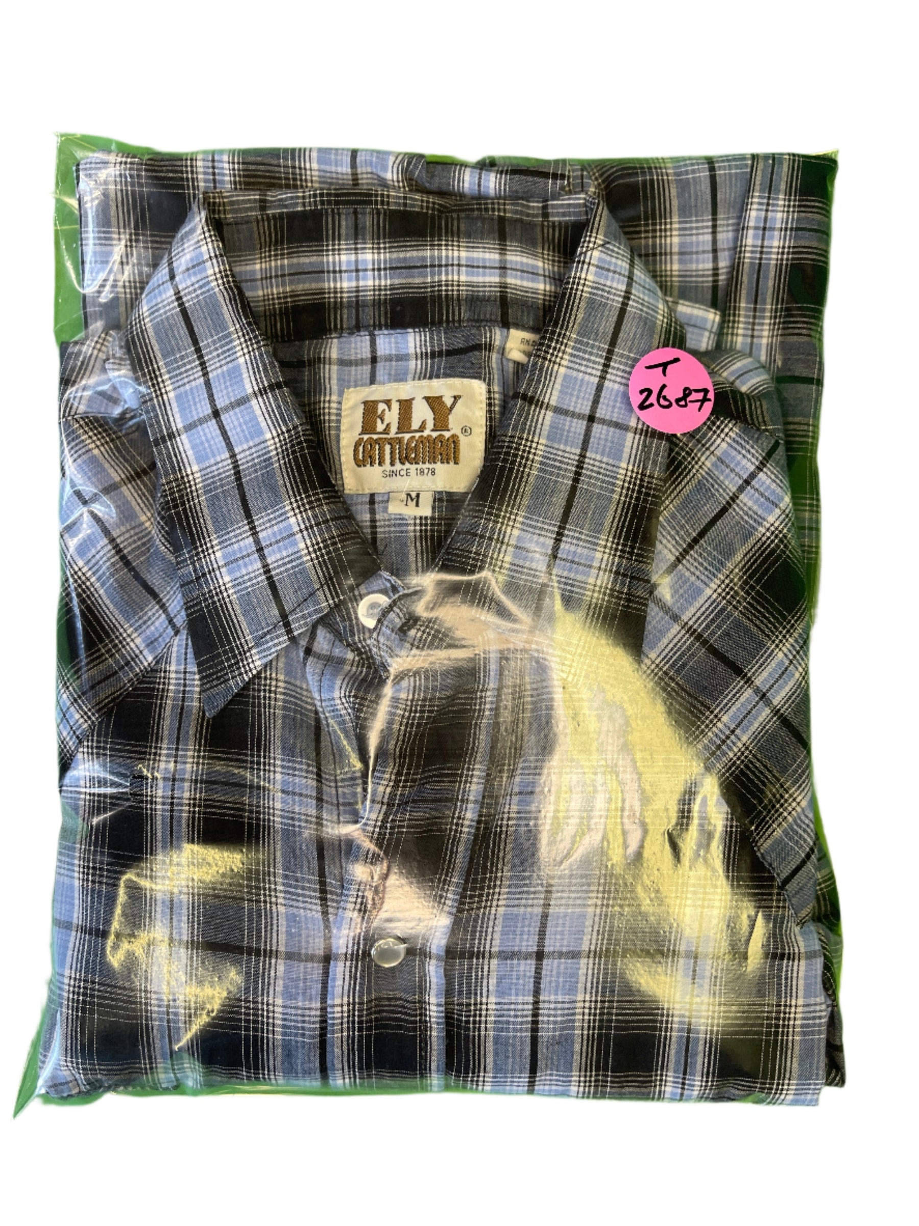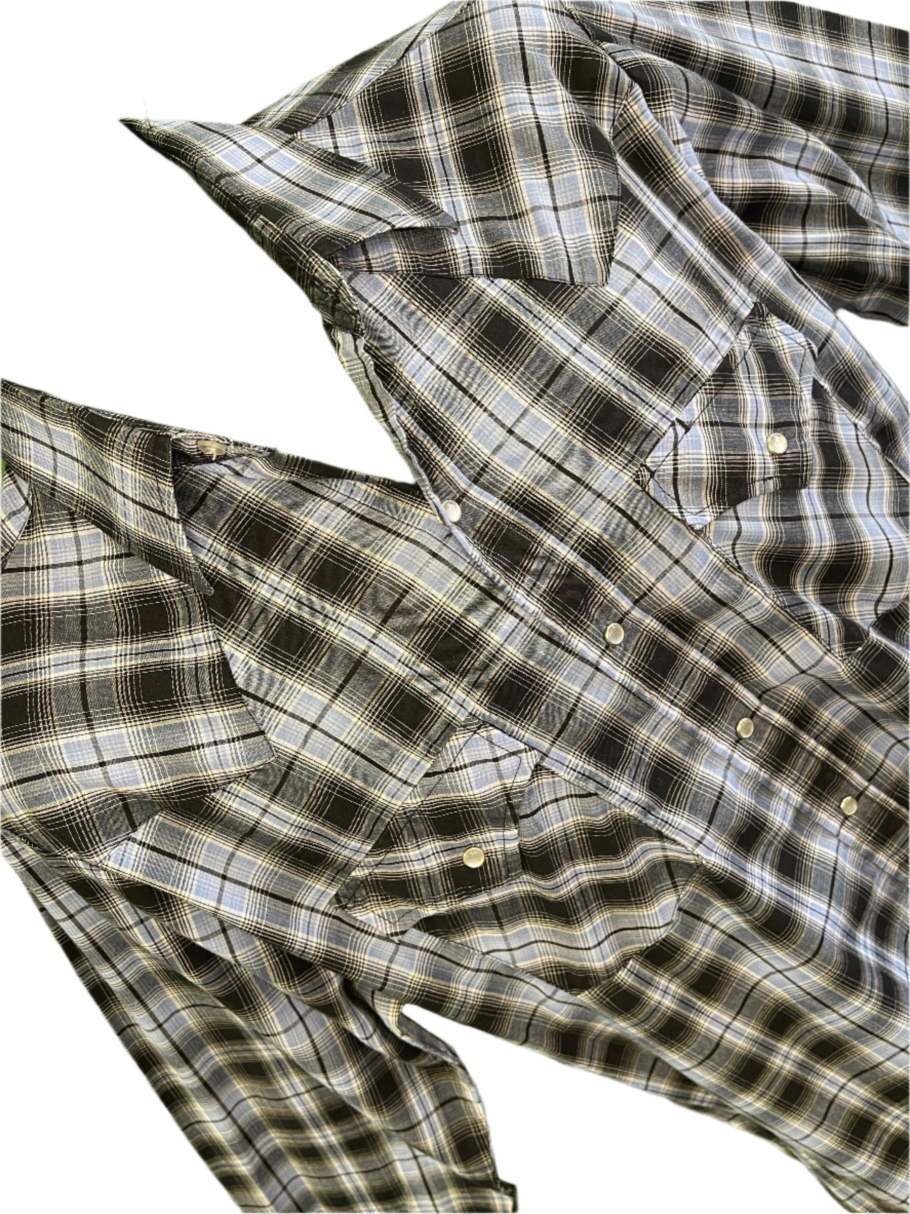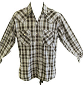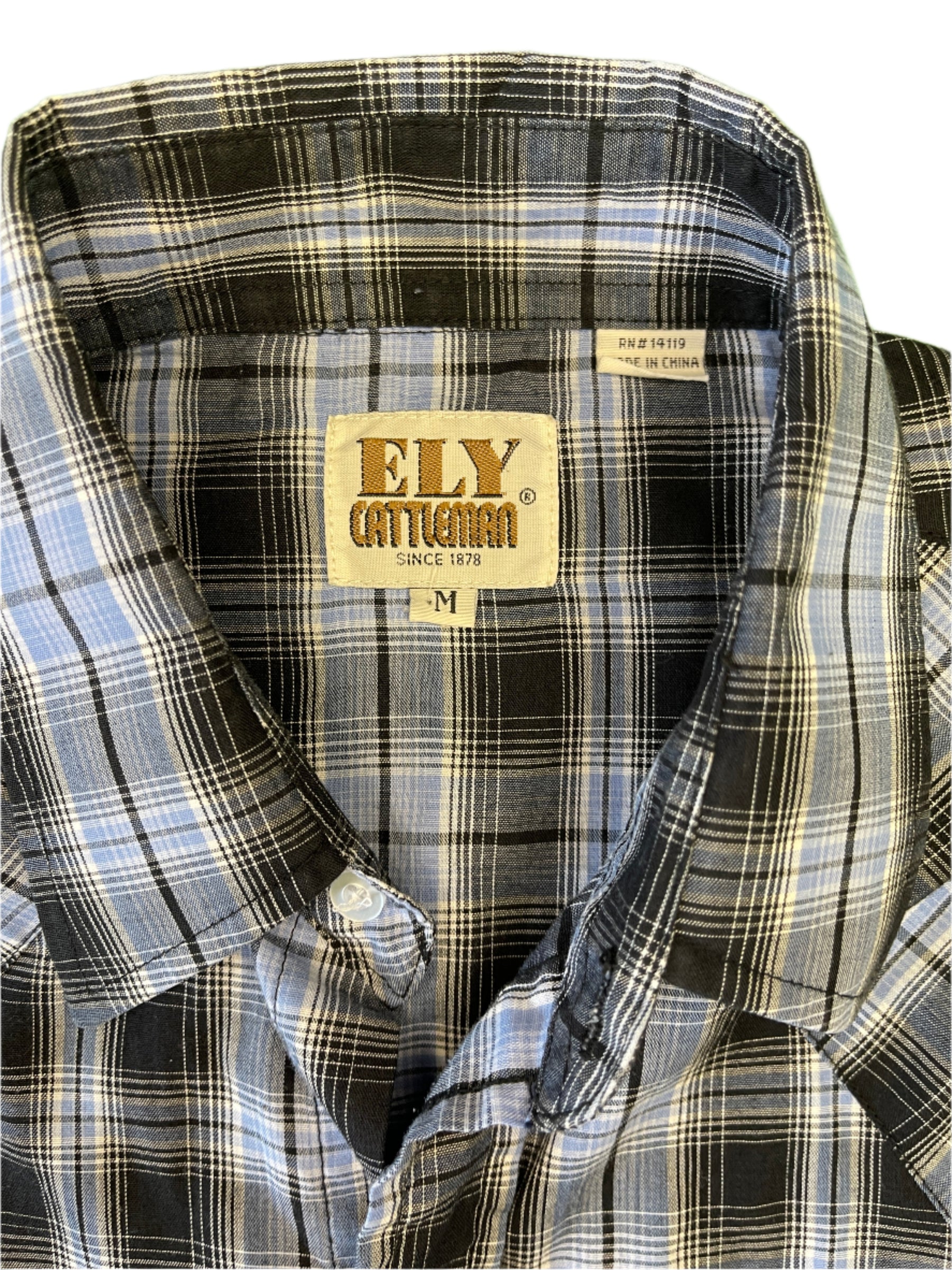 Ely Cattleman Western L/S Blue Black Plaid Shirt Poppers Men's Medium