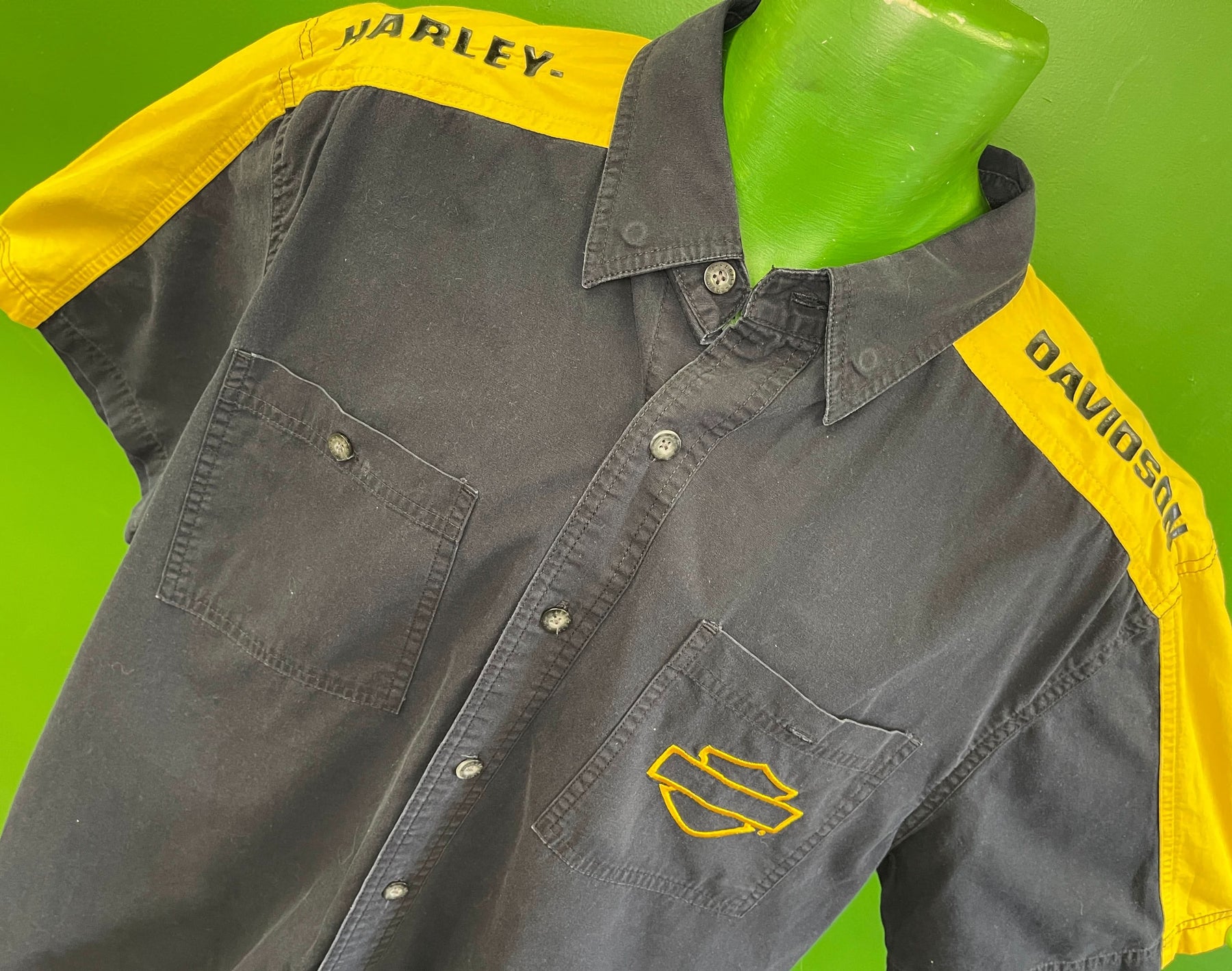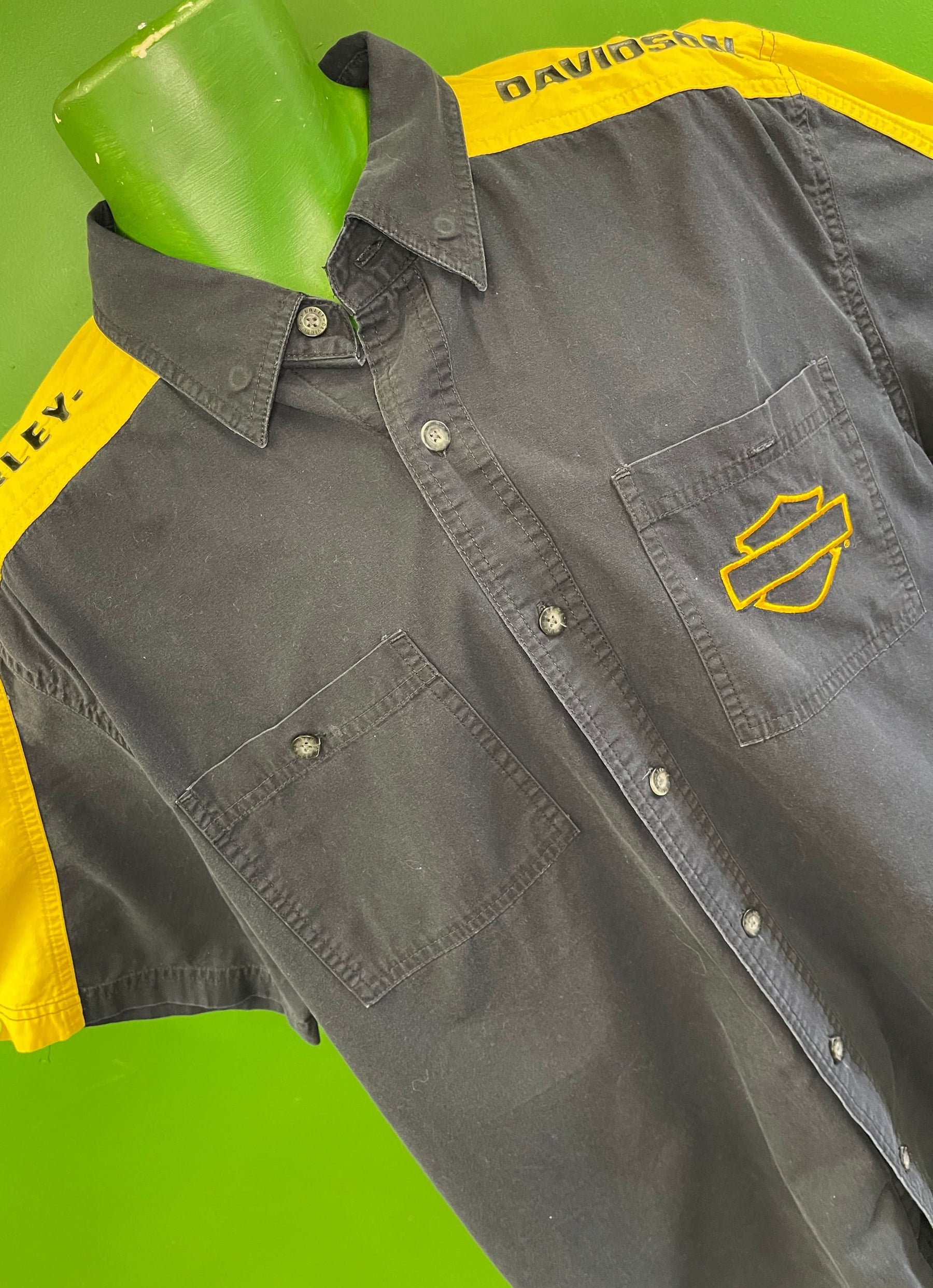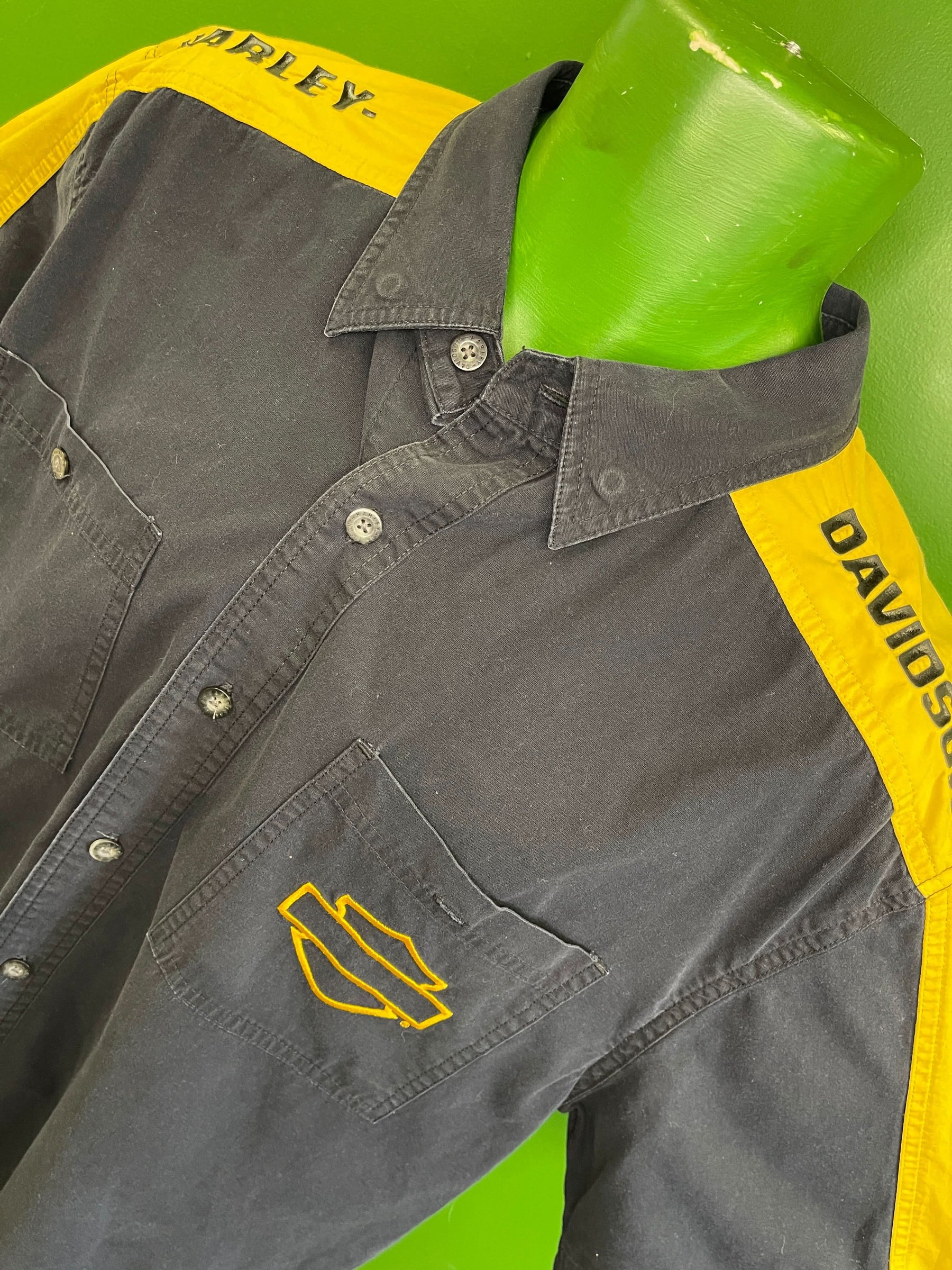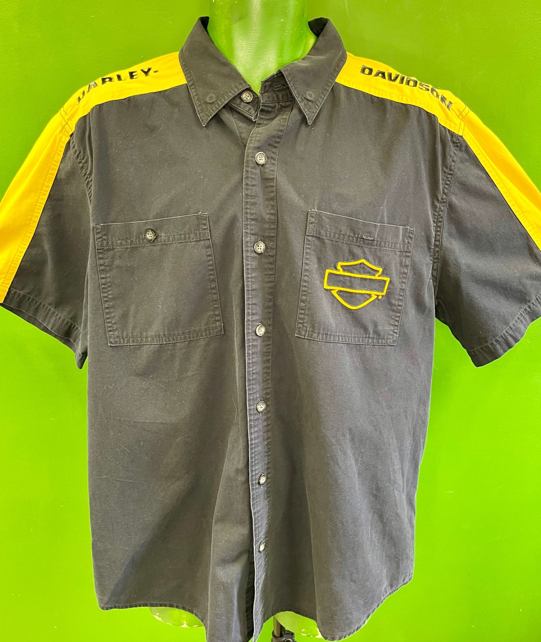 Harley Davidson 100% Cotton Yellow & Black Shirt Men's Large