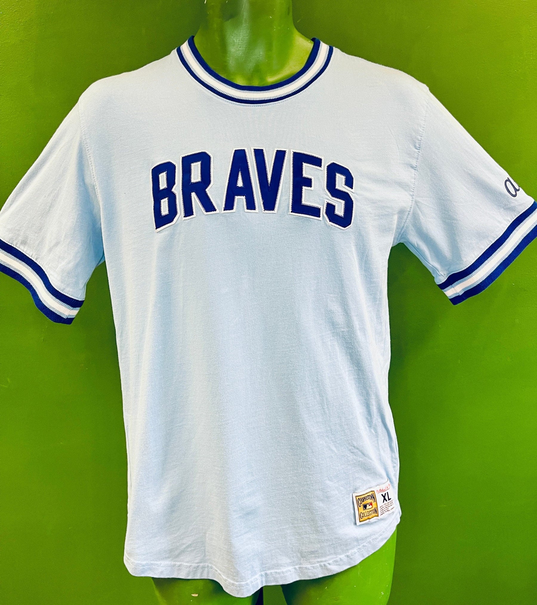 MLB Atlanta Braves Mitchell & Ness Stitched Blue T-Shirt Youth X-Large 18-20