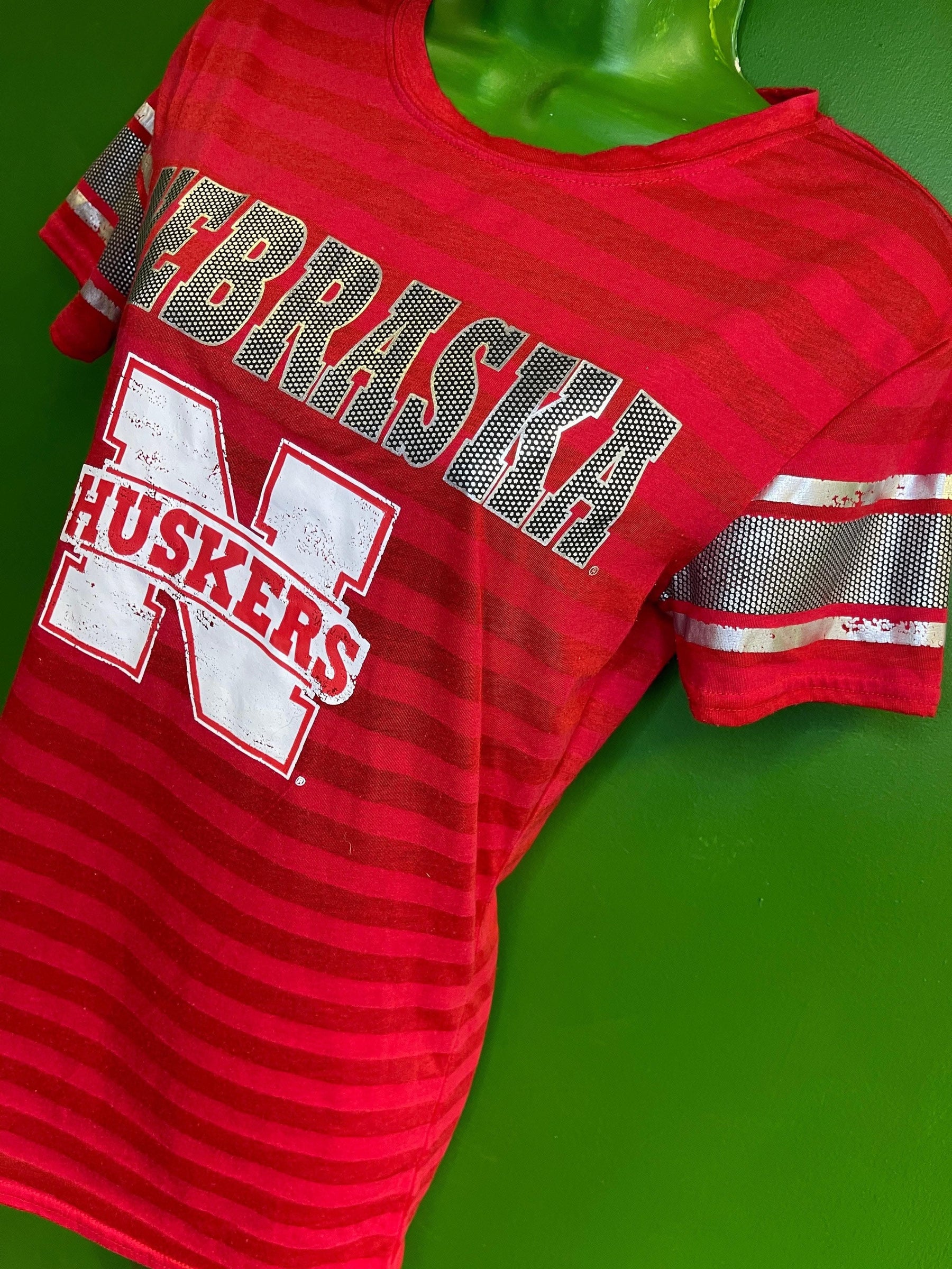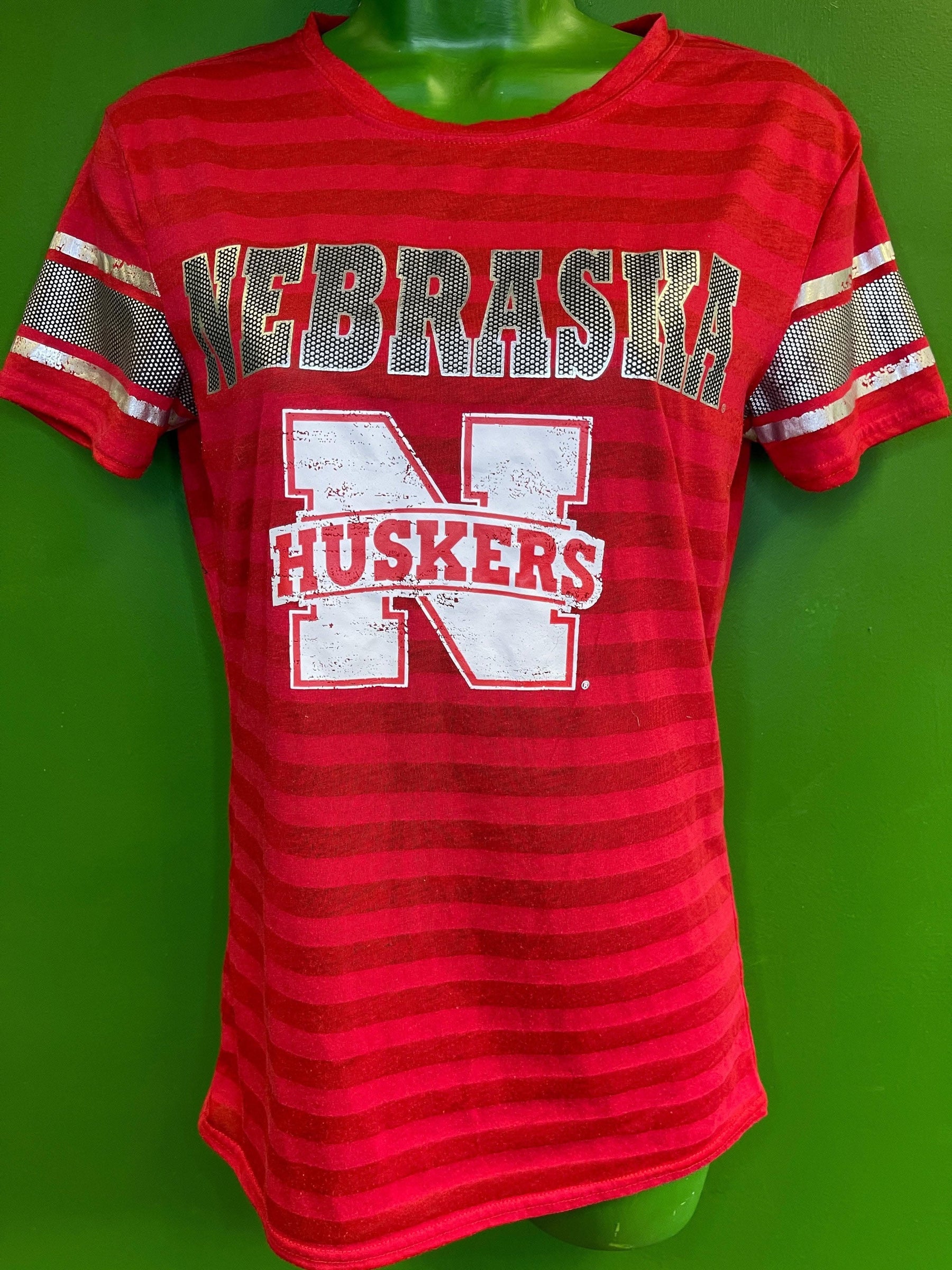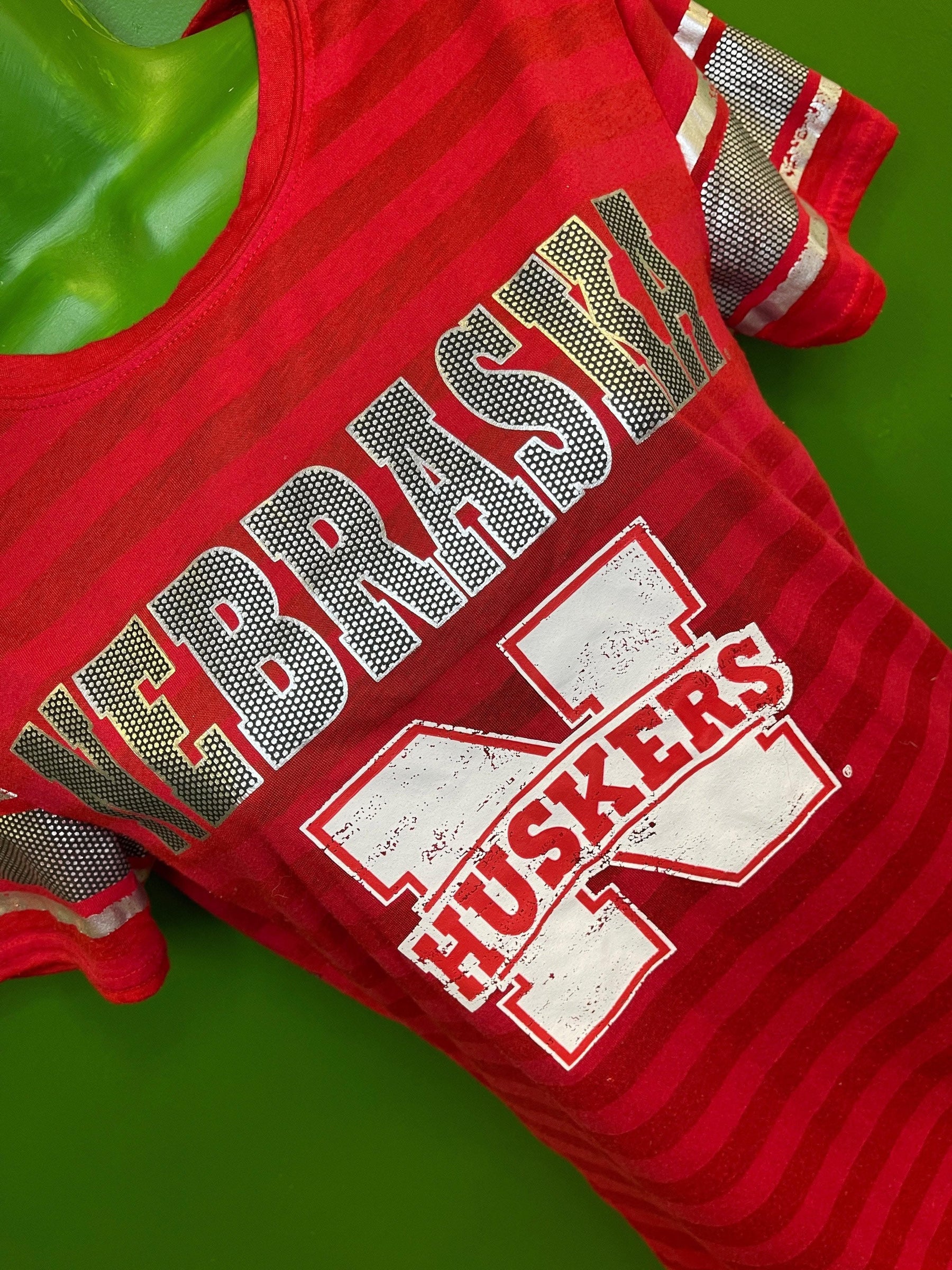 NCAA Nebraska Cornhuskers Sideline Shiny Red Striped T-Shirt Women's Medium