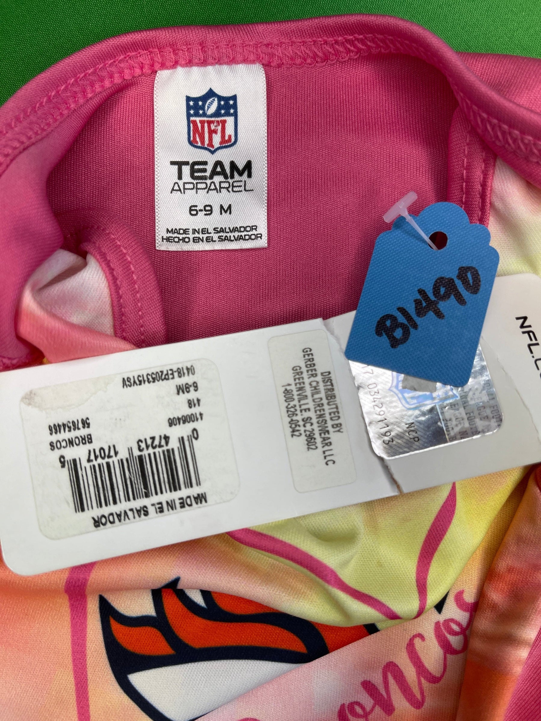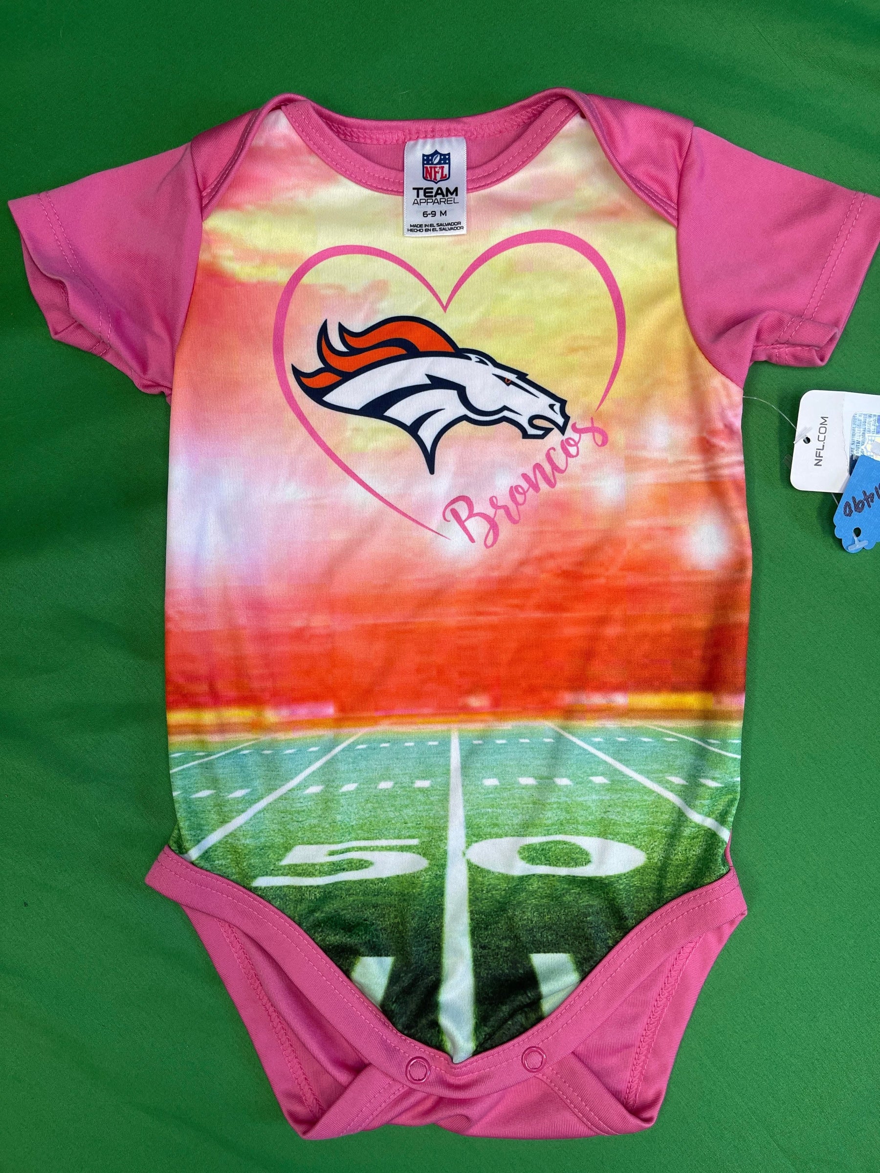NFL Denver Broncos Bright Pink Field Bodysuit 6-9 Months NWT