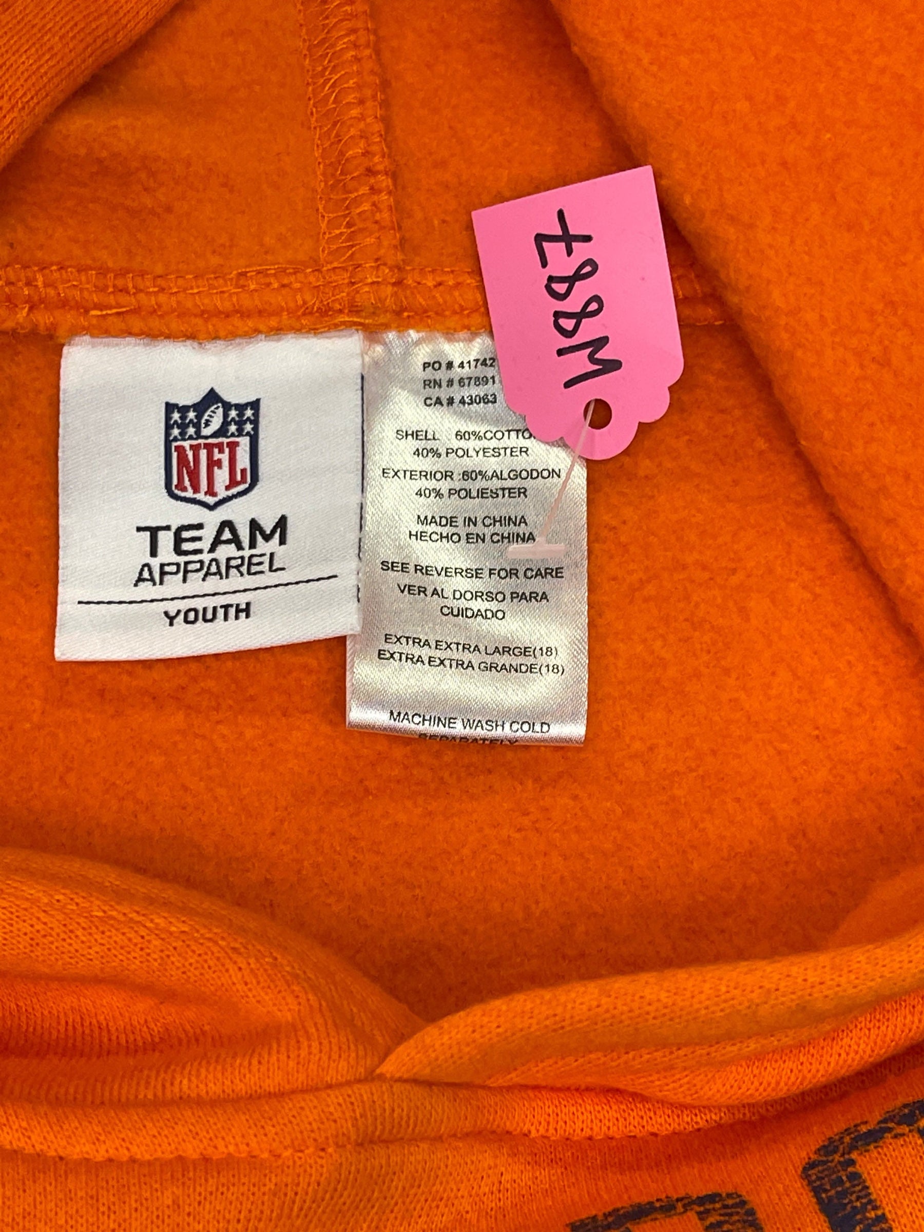 NFL Denver Broncos Orange Pullover Hoodie Youth X-Large 18