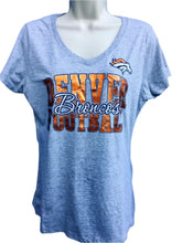 NFL Denver Broncos Grey V-Neck Metallic T-Shirt Women's Large NWT