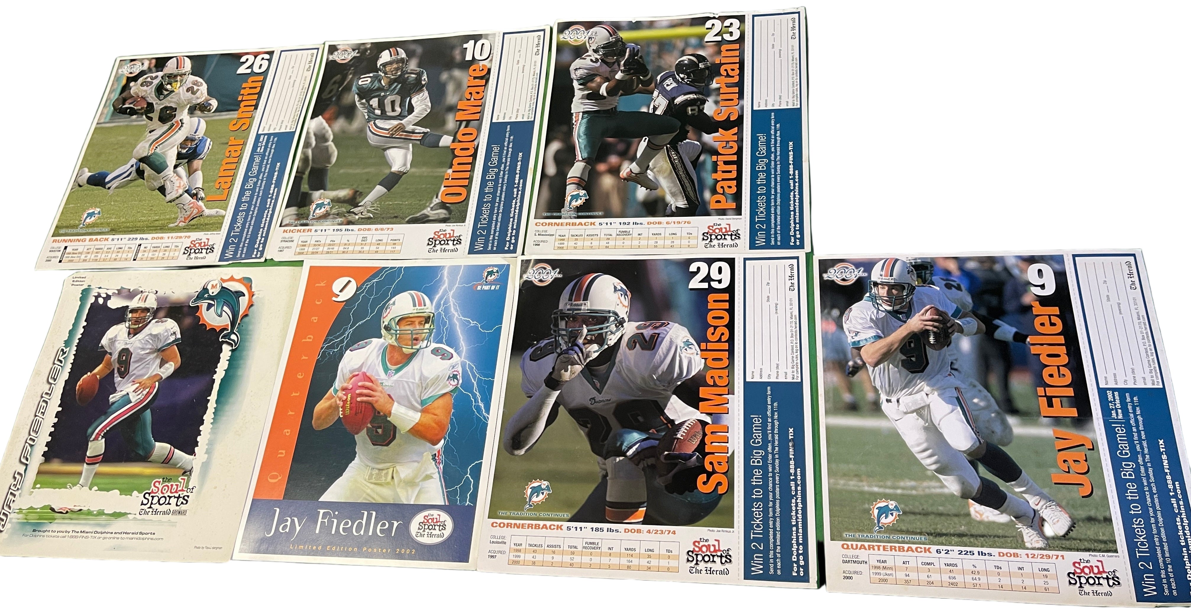NFL Miami Dolphins Lot of 7 A4 Sized Posters Cardstock Early 2000s
