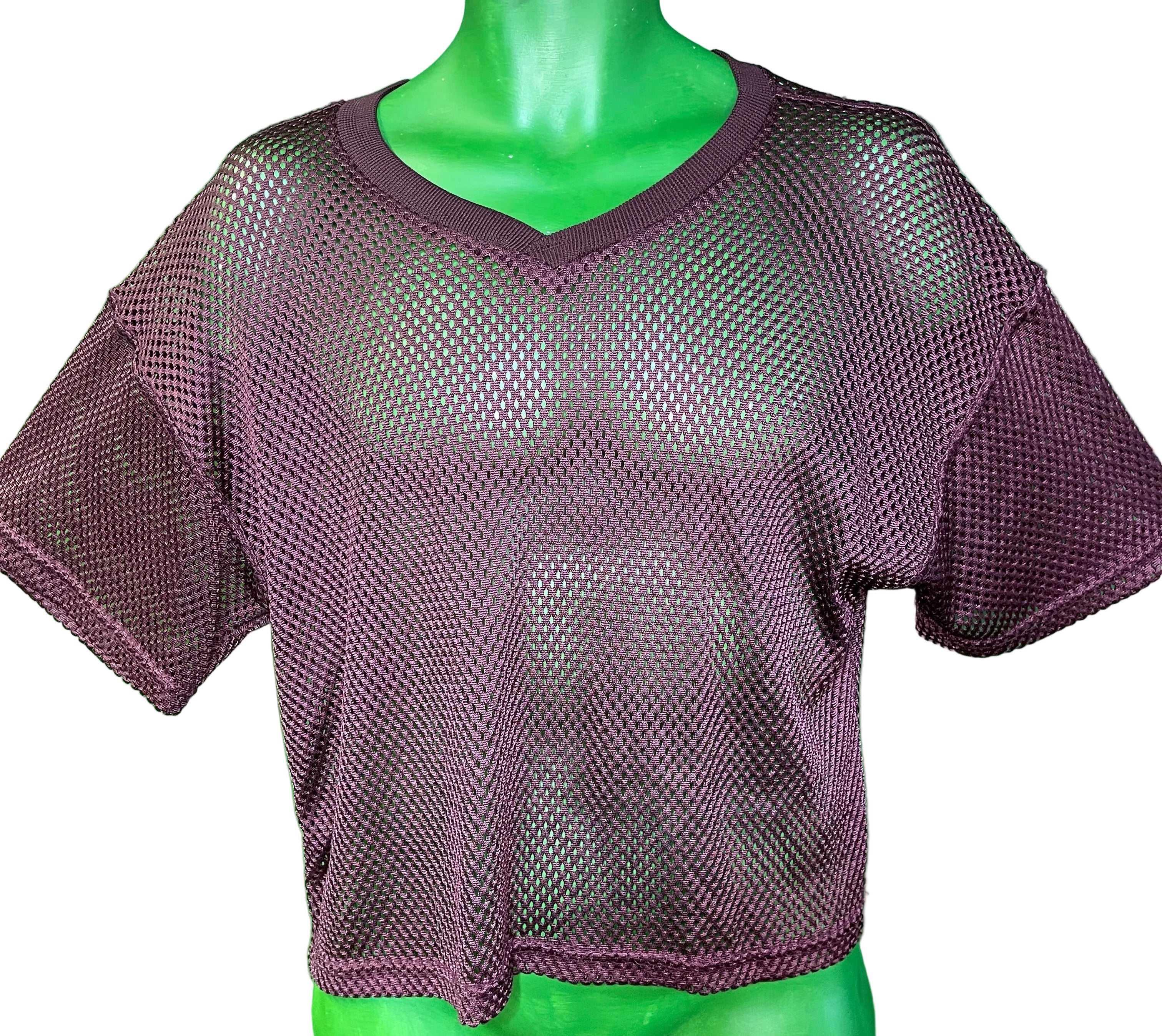 - Burgundy large-hole mesh fabric
