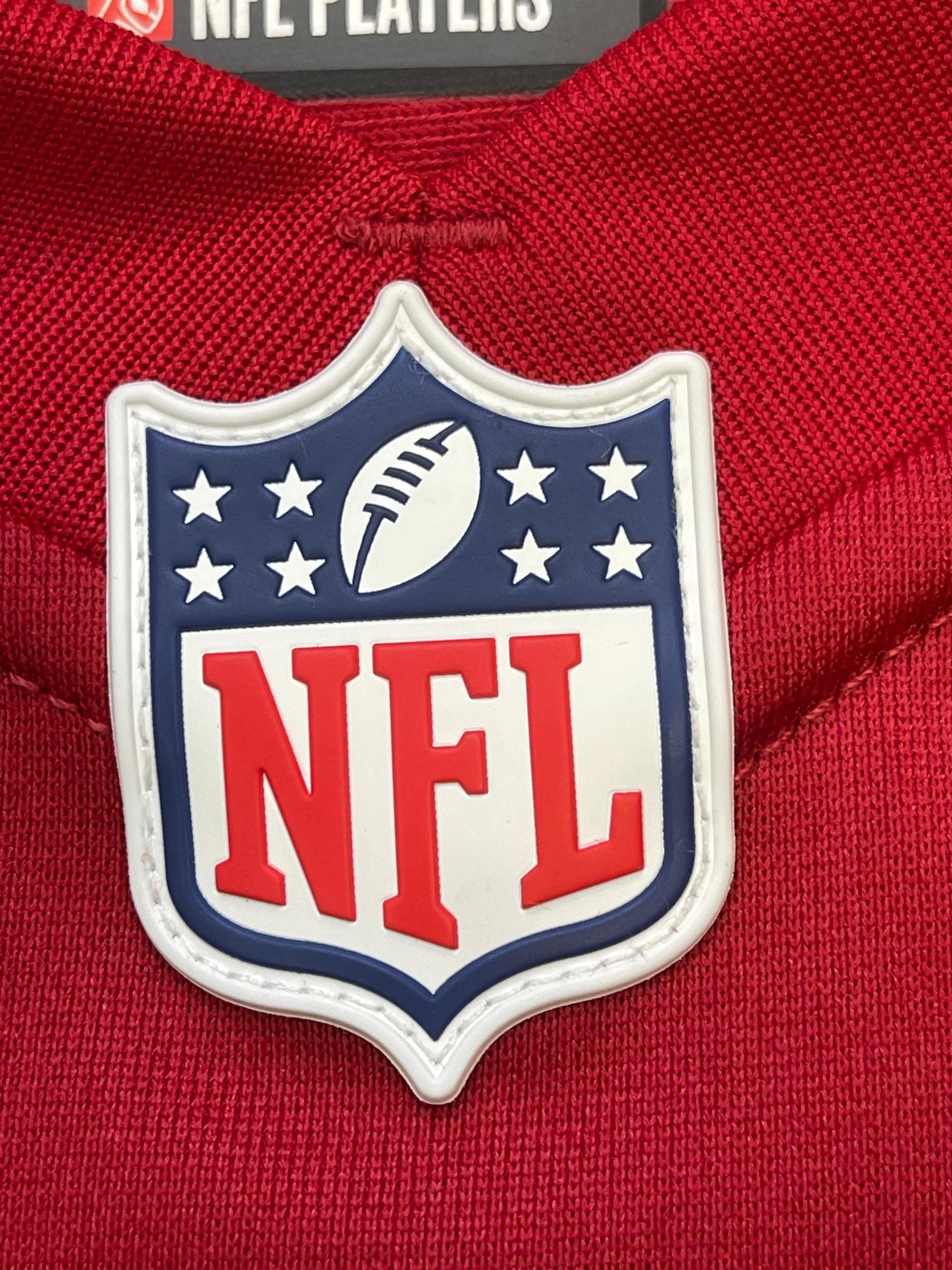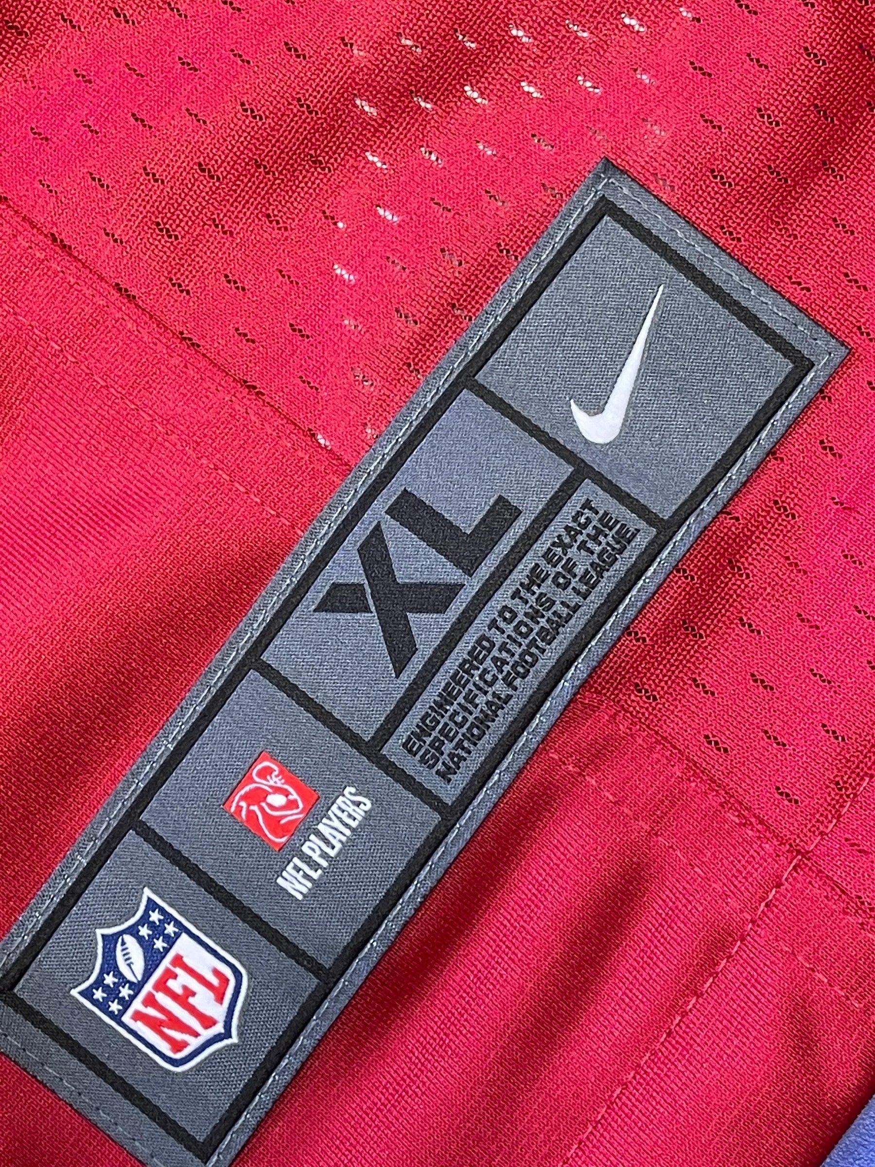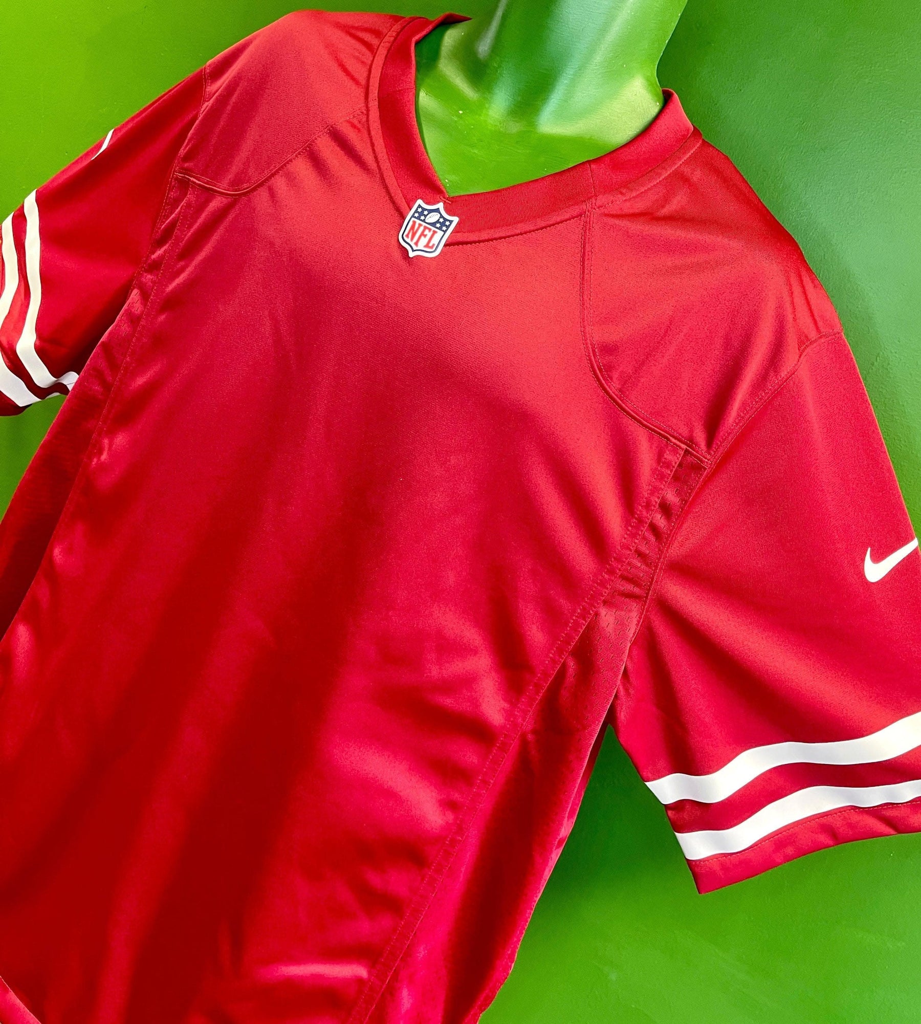- Nike logo and 49ers stripes on sleeves